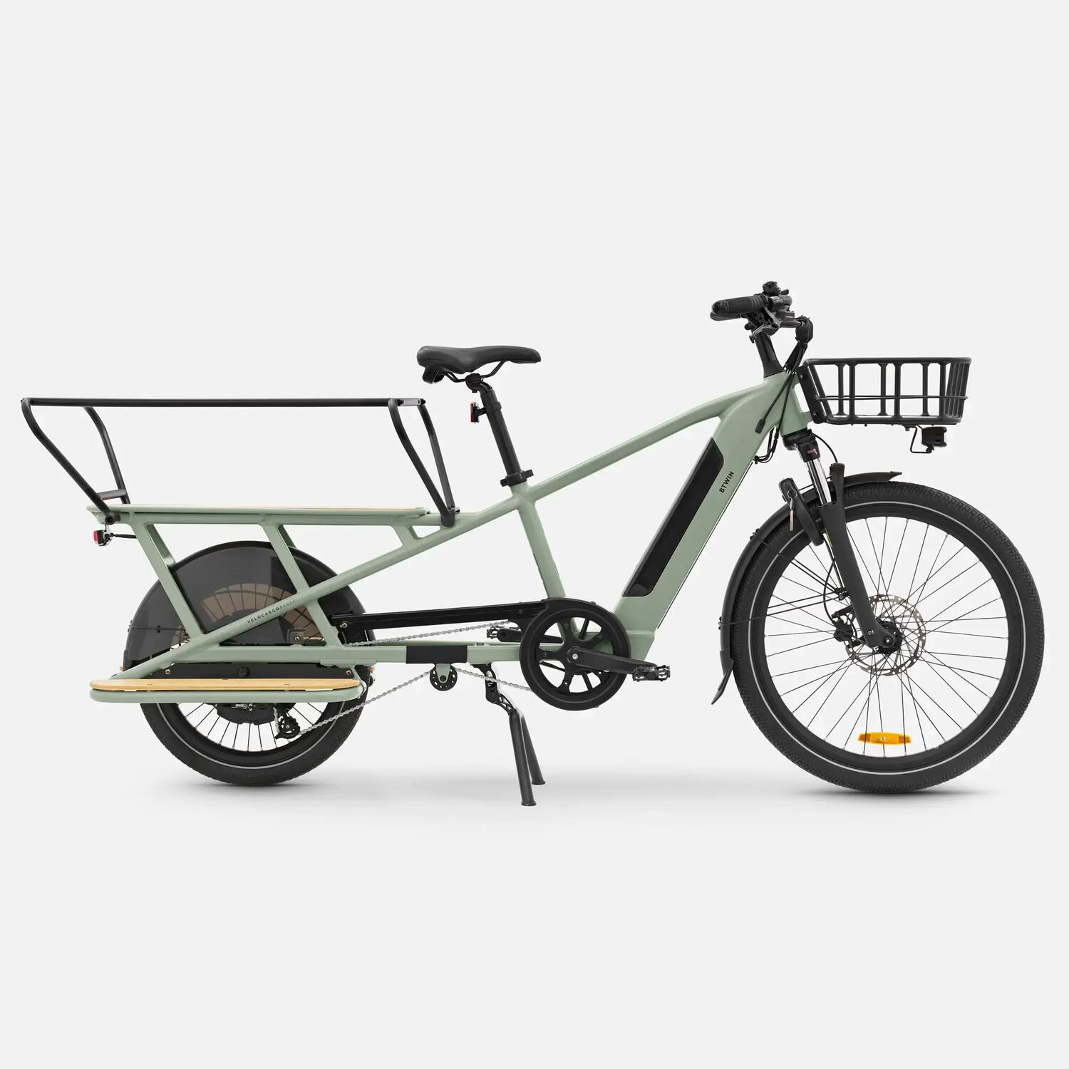Si vous cherchez une très grosse capacité de chargement sur votre vélo, le longtail VELOCARGO R500E vous permettra de transporter 2 enfants et 1 adulte ou 170 kg de chargement hors poids du vélo.